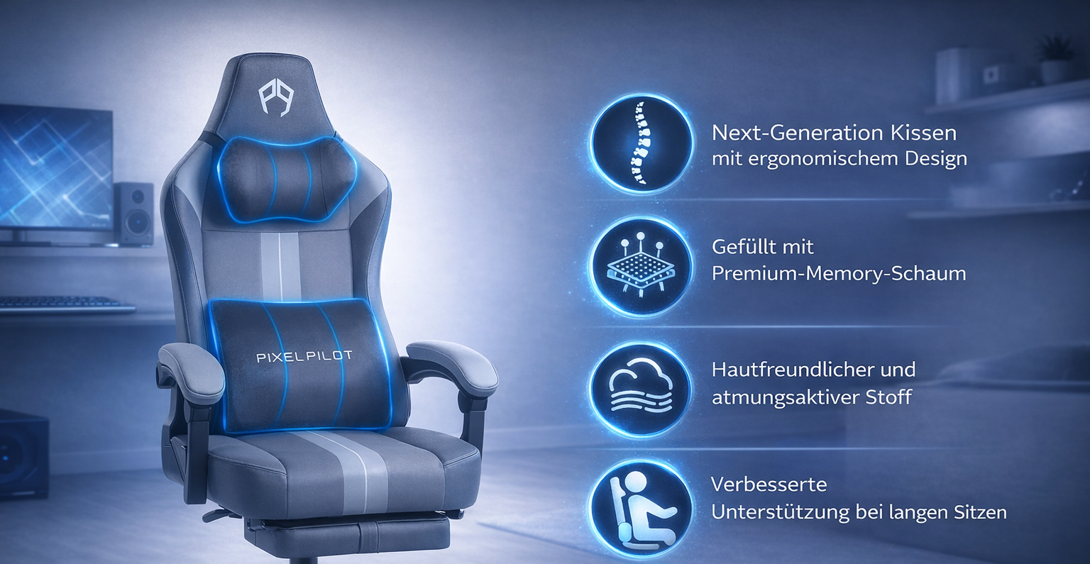 The Nebula Gaming Chair offers ergonomic design, breathable fabrics, and robust stability for maximum comfort. Perfect for gaming, work, and relaxation – with trusted German quality!
