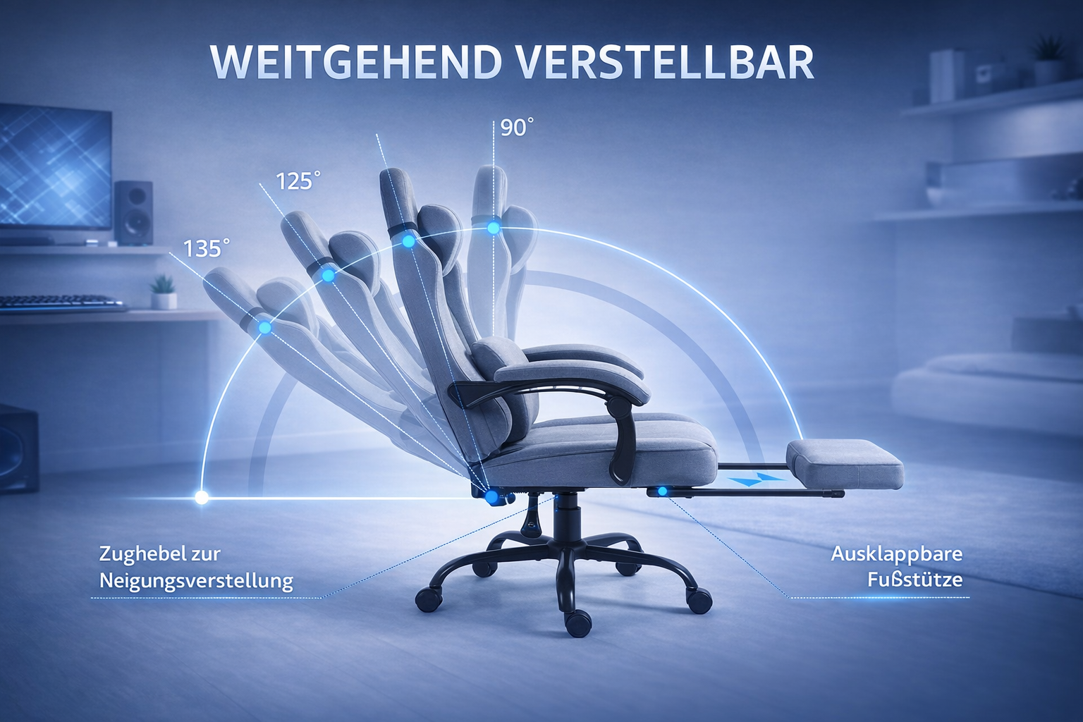 Adjustable and Easy to Assemble: Adjust the height by 10 cm and recline the backrest up to 135 degrees for optimal flexibility during gaming, work, or relaxation. The chair is ideal for users from 150 cm to 190 cm tall. Additionally, the assembly is straightforward and quick, so you can enjoy your new comfort in no time.