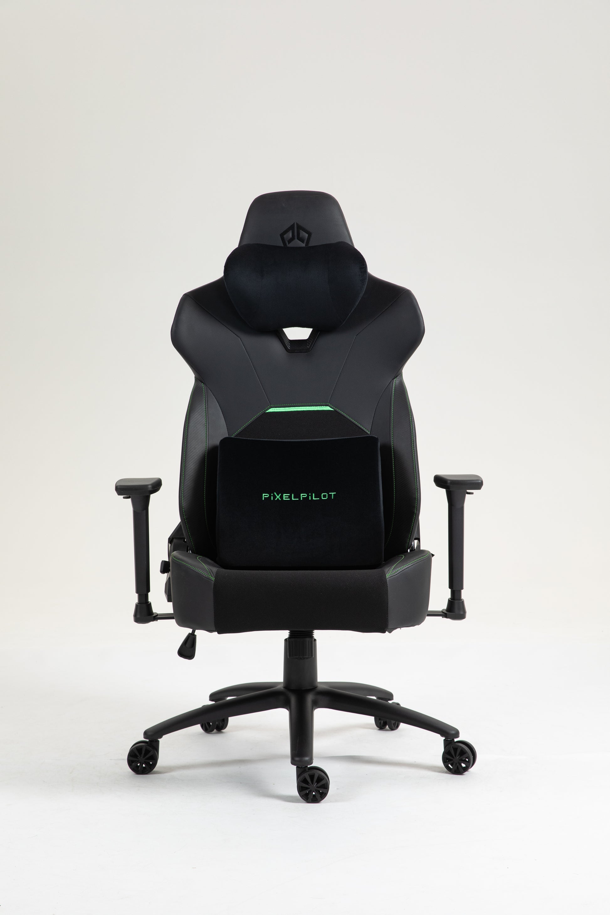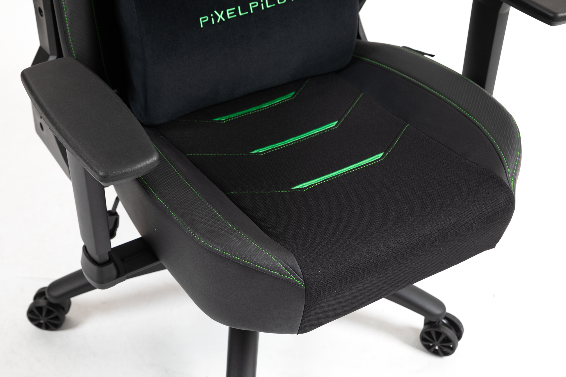 Enhanced seating comfort: The Vanguard Gaming Chair improves your seating experience with ergonomically designed head and lumbar pillows and a spacious, edge-free seat. Our CushionCore technology provides exceptional support, adapting to your body and specially designed for extended sitting periods, whether gaming or working. Discover the difference genuine comfort makes and enjoy seating quality you won't want to live without.